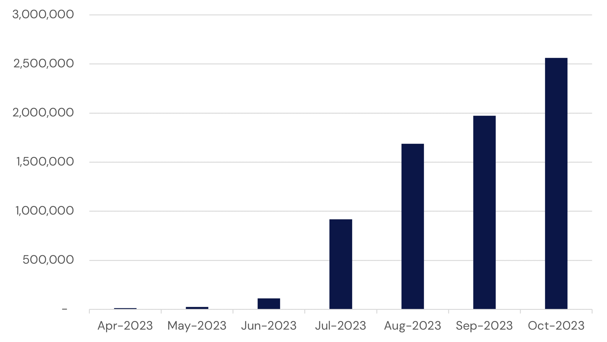 ERC-4337 is a standard that was deployed on the Ethereum Mainnet in March 2023. Its introduction to the ecosystem facilitates account abstraction without having to modify the underlying core protocol. By offering a new standardized method for defining permissions within the Ethereum ecosystem, ERC-4337 is poised to significantly influence how user accounts evolve into advanced smart wallets. The potential outcome is a much smoother experience while engaging with EVM-based chains. Here we can see that the growth in operations conducted by these new smart contract wallets has steadily risen since launch.